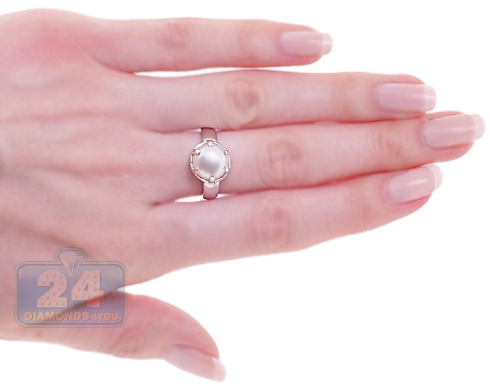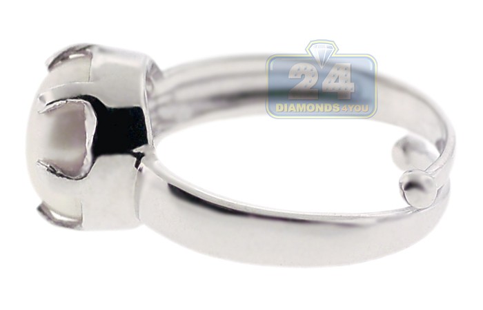 925 Sterling Silver Pearl Solitaire Womens Adjustable Ring