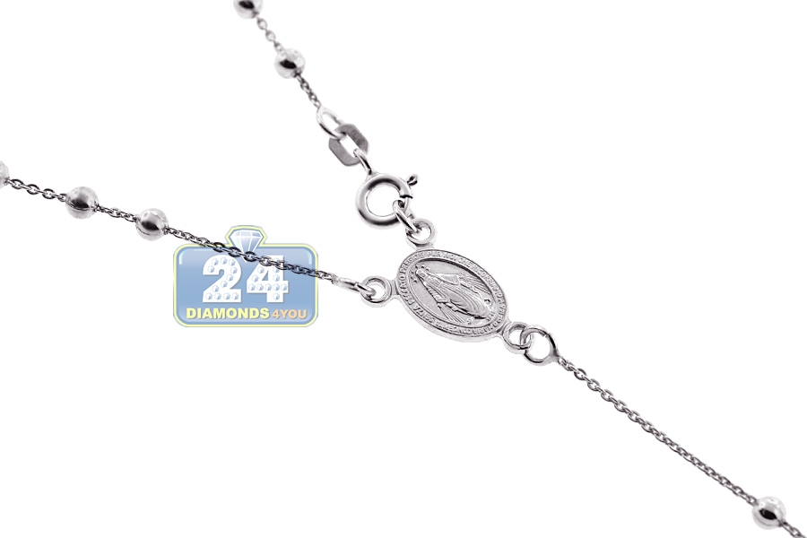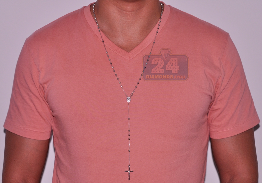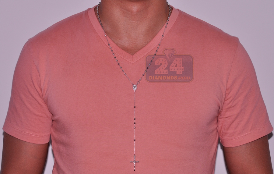 Celebrate your faith with our exceptional rosary bead necklace! It is masterly produced from Italian 925 sterling silver, and covered with white rhodium that gives a bright color. This men's cross necklace is available in length of 24 and 26 inches, and its beads has width of 4 mm. A dangling part measures 6 inches in length. This silver rosary beads necklace is a timeless accessory that looks unique anytime!