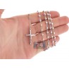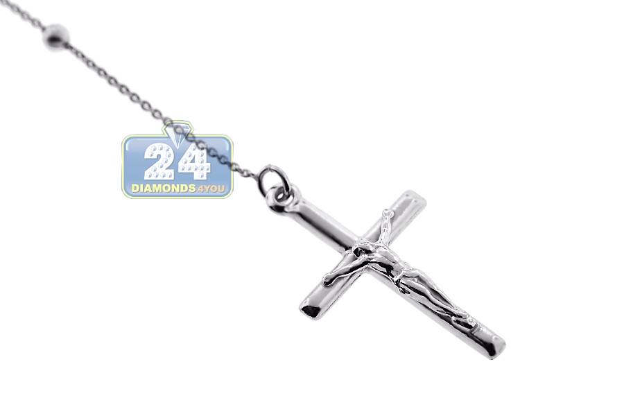 Sterling Silver Rosary Beads Mens Cross Necklace 4 mm