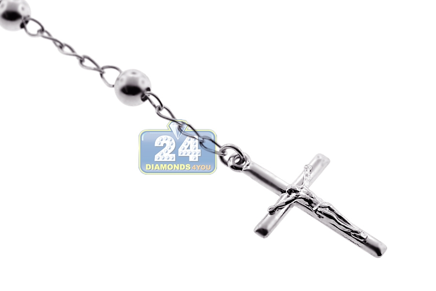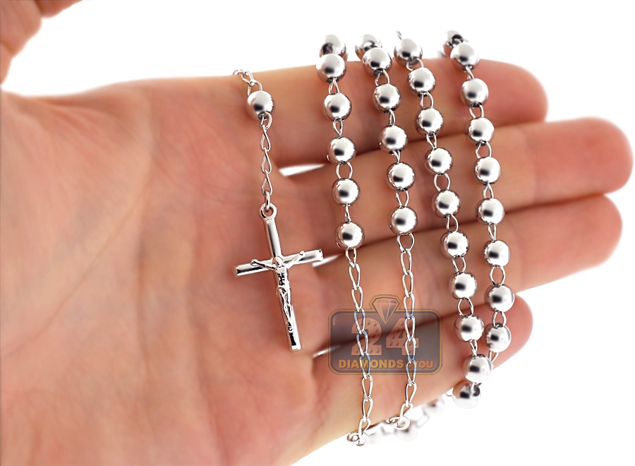 Sterling Silver Rosary Beads Cross Necklace 6 mm 28 Inches