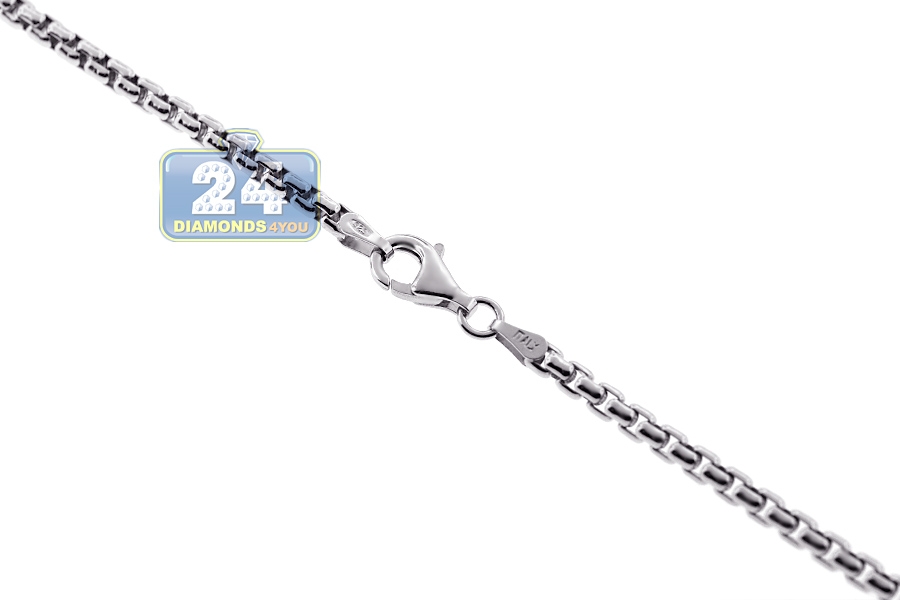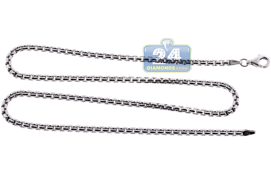 Solid Sterling Silver Round Box Mens Chain 3 mm
