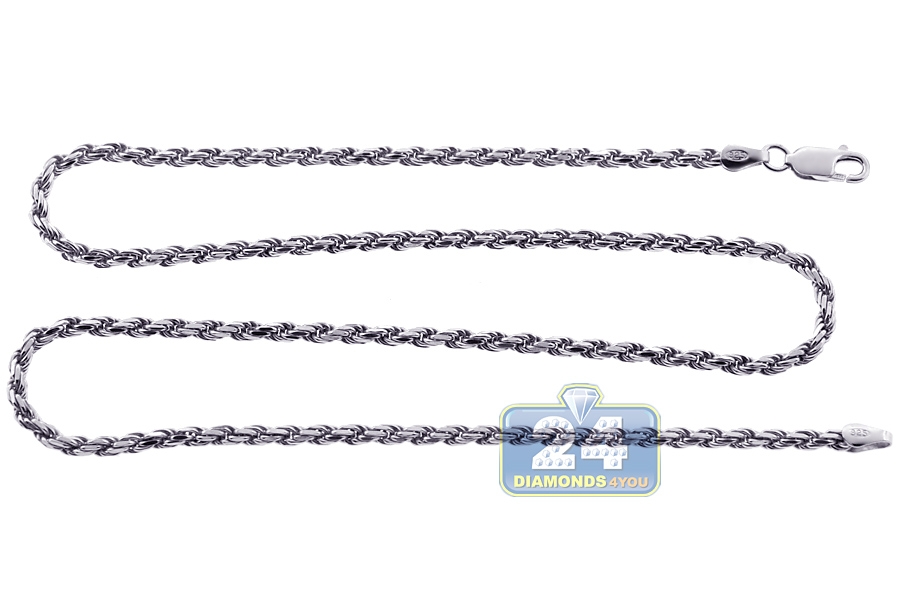 925 Sterling Silver Solid Twisted Rope Mens Chain 2.5 mm