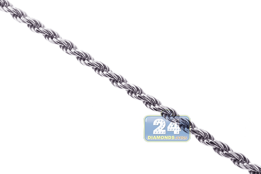 Make an unforgettable fashion statement with our solid rope chain! It is beautifully handmade of 925 sterling silver, and covered with white rhodium that helps prevent tarnishing and gives a bright color. The sterling silver features width of 1.5 mm, and available in length of 16, 18, 20, 22 or 24 inches; and secured by a classic lobster claw clasp. This women's silver chain is a classy addition to chain collection!