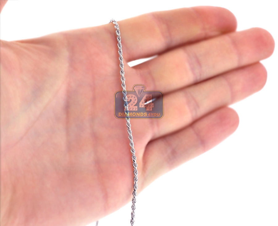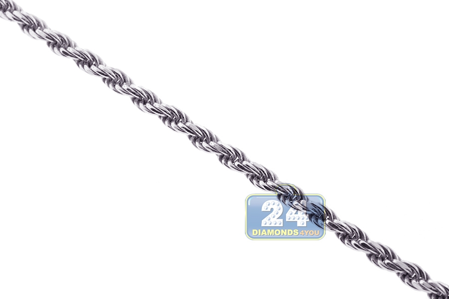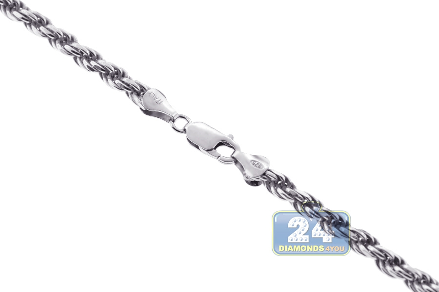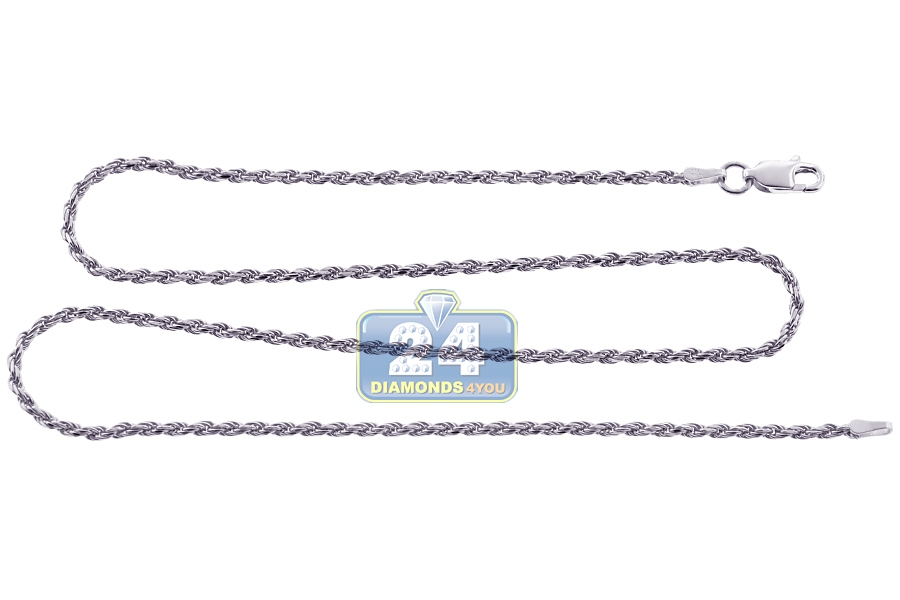 Our solid rope chain is the ideal way to dress up your look! It is beautifully handmade of 925 sterling silver, and covered with white rhodium that helps prevent tarnishing and gives a bright color. The sterling silver necklace measures 2 mm in width, and comes in length of 16, 18, 20, 22 or 24 inches; and secured by a safe and user-friendly lobster claw clasp. A classy addition to chain collection!