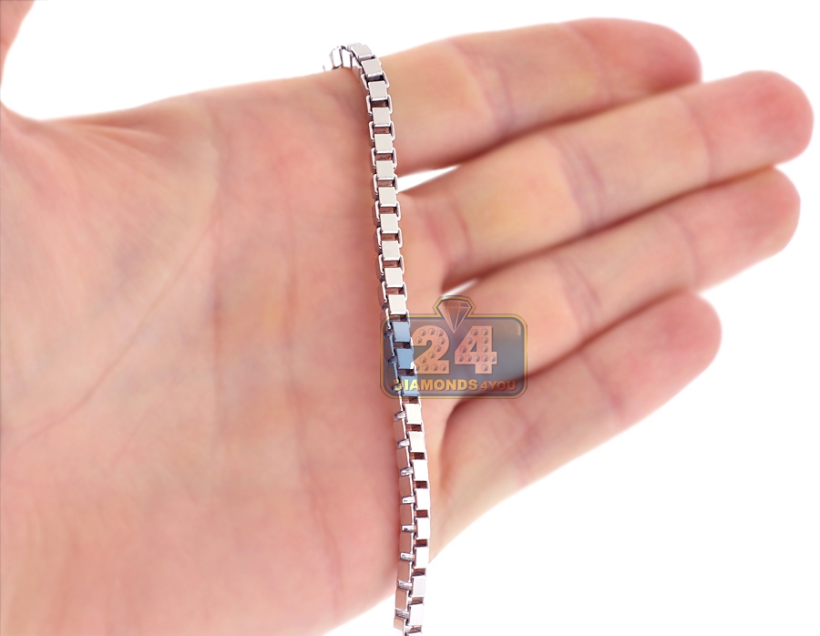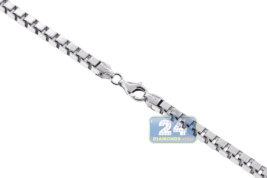 Our durable square box chain is ideal to show your individual style! It's expertly produced from precious 925 sterling silver, and covered with white rhodium that helps prevent tarnishing and gives a bright color. The necklace measures 4 mm in width, 22, 24, 26 or 30 inches in length; and secures with a safe and user-friendly lobster claw clasp. A perfect choice for everyday wear!