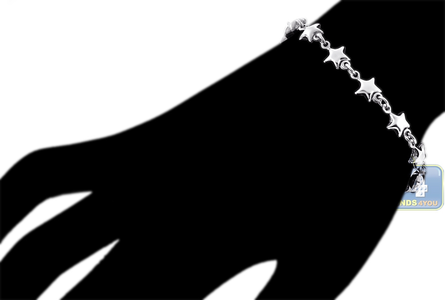 925 Sterling Silver Star Charm Womens Bracelet 7 1/2 Inches