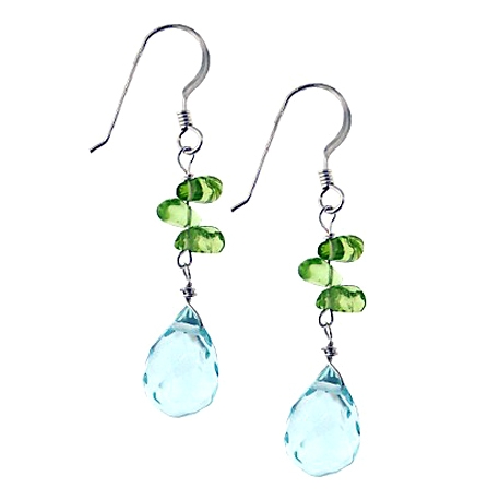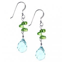 Add a fresh and spring touch to your outfit. Design of these elegant earrings features a combination of green peridot and soft aqua topaz. These shimmery earrings are gracefully dangle from silver french wires and have a drop length of 1 11/16 inches.