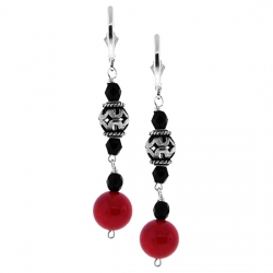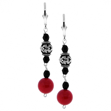 Earrings beaded with big, bright red coral and black onyx will brighten up any outfit! Crafted in sterling silver, this amazing jewelry piece features gorgeous dangling beads of fiery red coral, black onyx and silver beads.