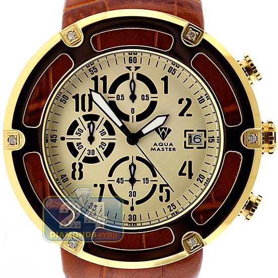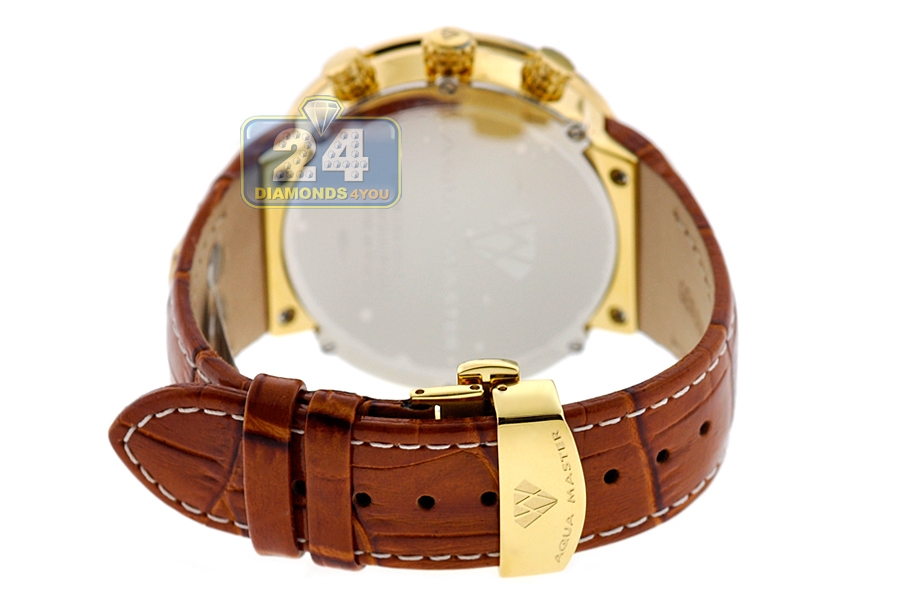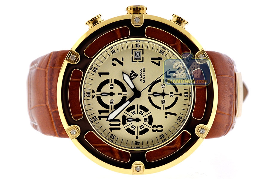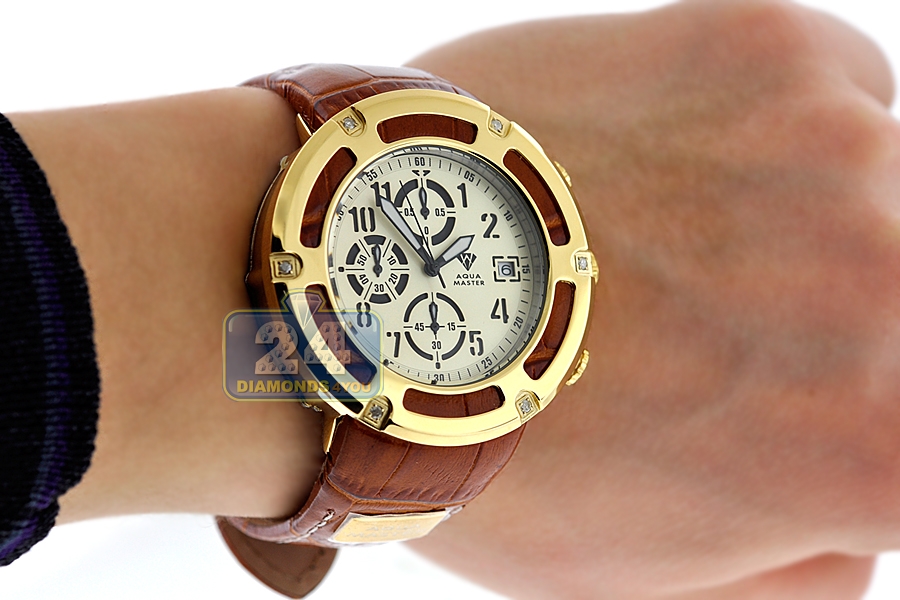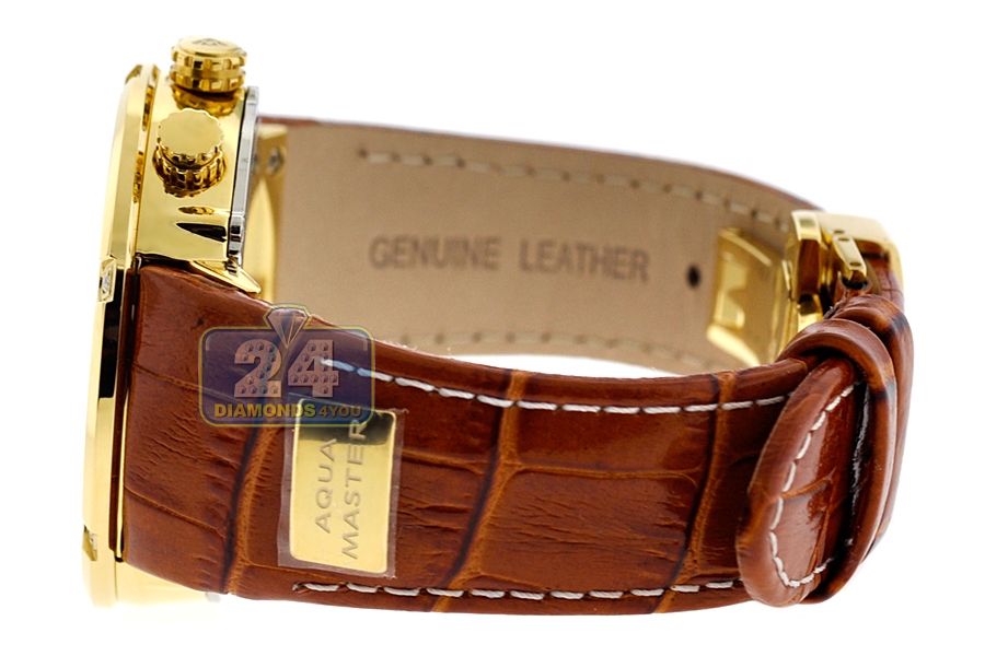Aqua Master 0.24 ct Diamond Yellow PVD Steel Leather Mens Watch