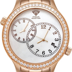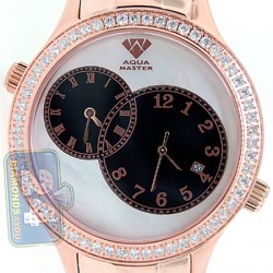 Aqua Master 2 Time Zone 2.45 ct Diamond Mens Pearl Dial Watch