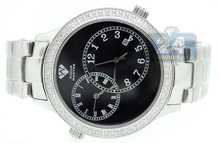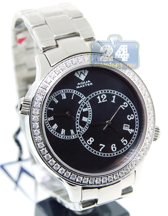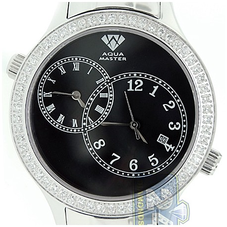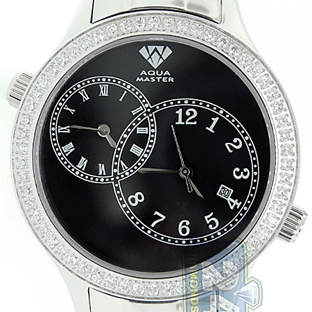 Aqua Master 2 Time Zone 2.45 ct Diamond Mens Black Dial Watch