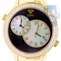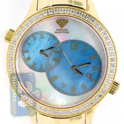 Aqua Master 2 Time Zone 2.45 ct Diamond Mens Gold Blue Watch