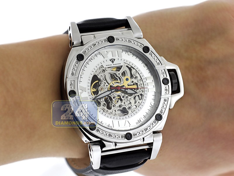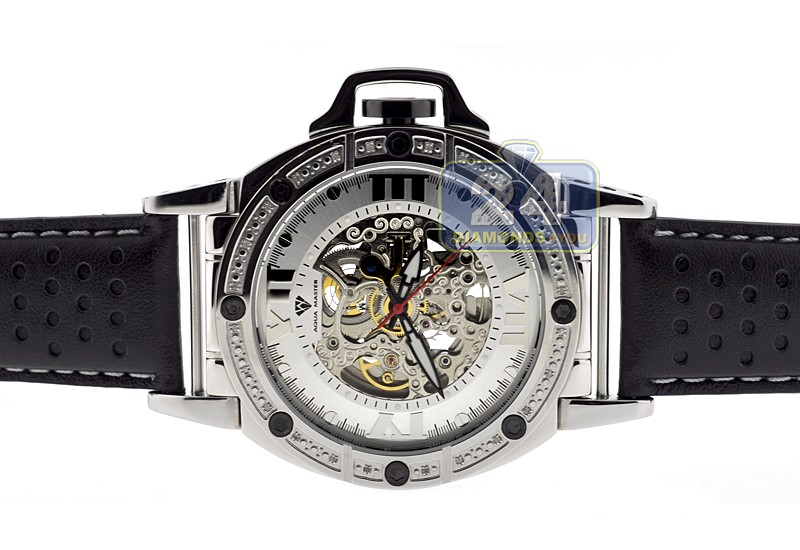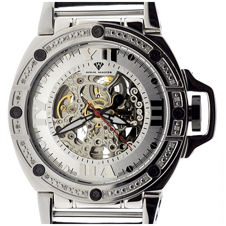 Aqua Master Automatic Skeleton 0.24 ct Diamond Mens Silver Watch