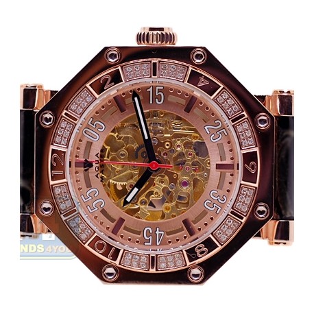 Aqua Master Automatic Skeleton 1.00 ct Diamond Mens Rose Watch