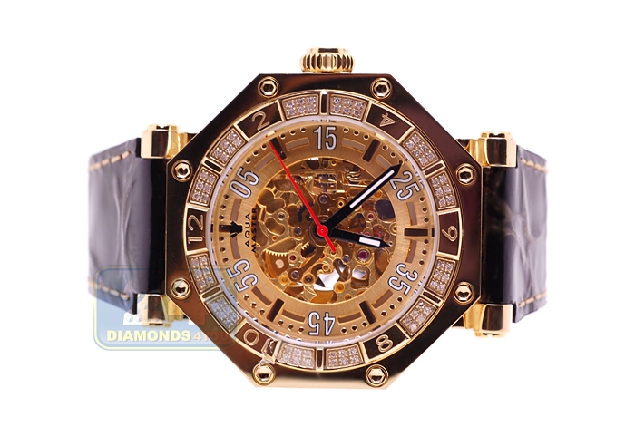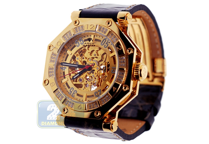 Aqua Master Automatic Skeleton 1.00 ct Diamond Mens Yellow Watch
