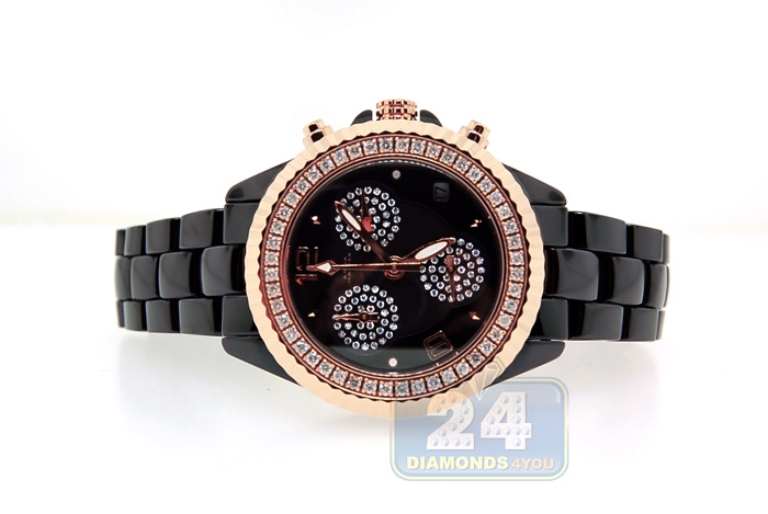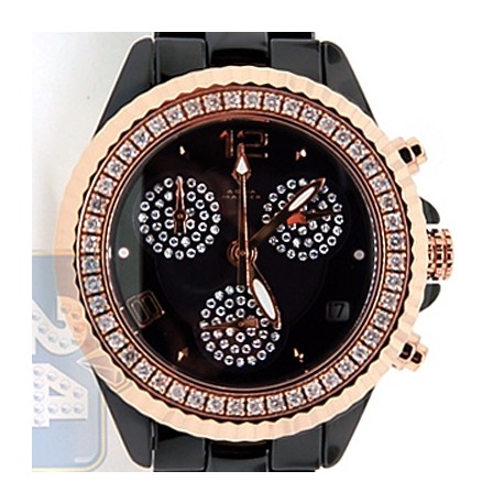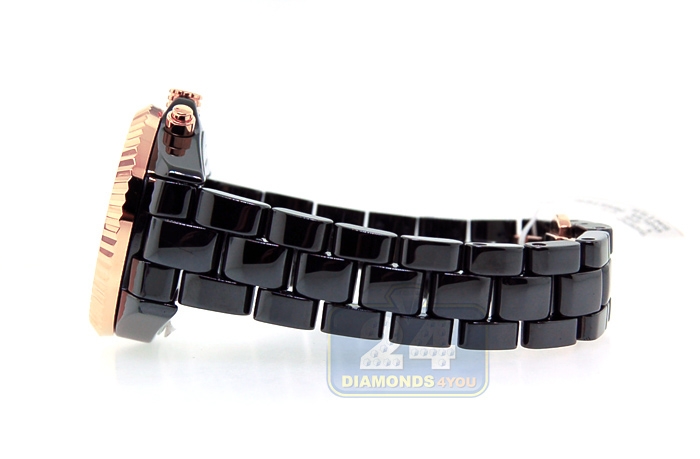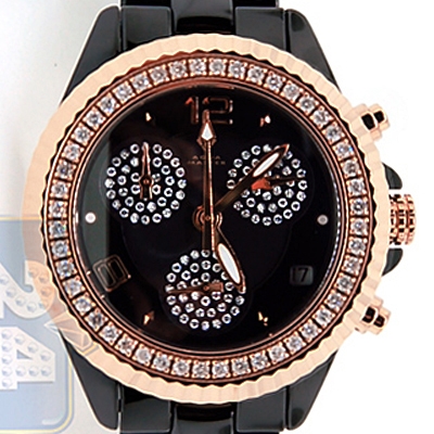 Aqua Master Black Ceramic 1.25 ct Diamond Womens Rose Tone Watch