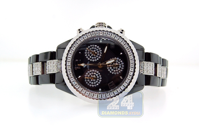 Aqua Master Black Ceramic 3.00 ct Diamond Womens Mini Watch