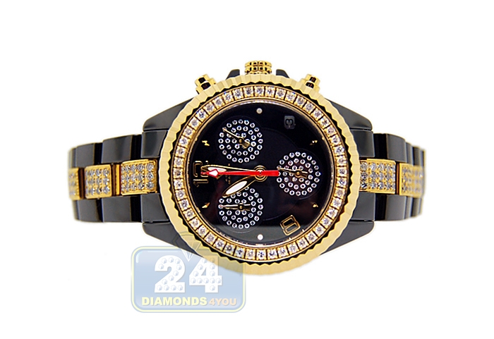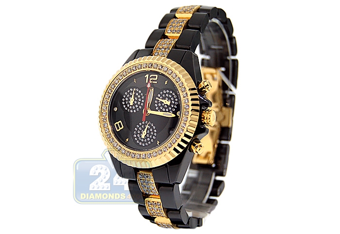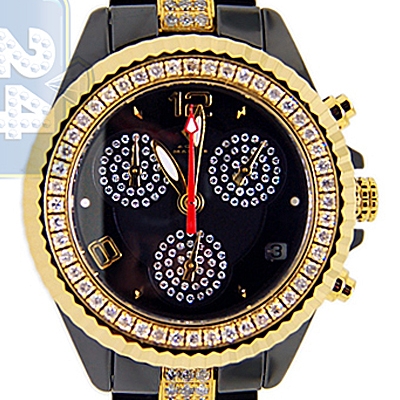 Aqua Master Black Ceramic 3.00 ct Diamond Womens Gold Tone Watch