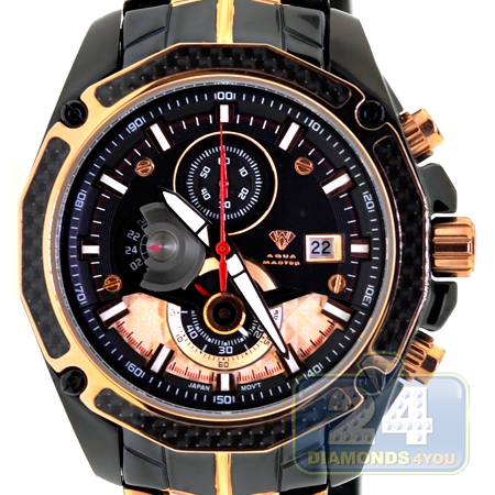 Aqua Master Carbon Chronograph Mens Black Gold Tone Watch