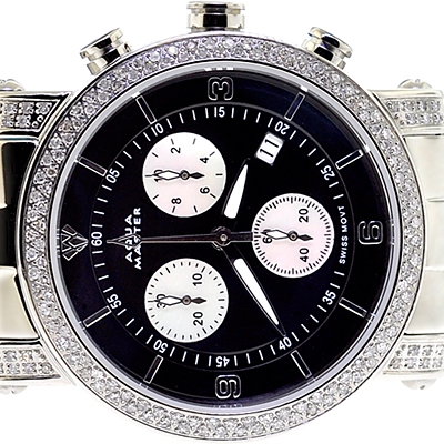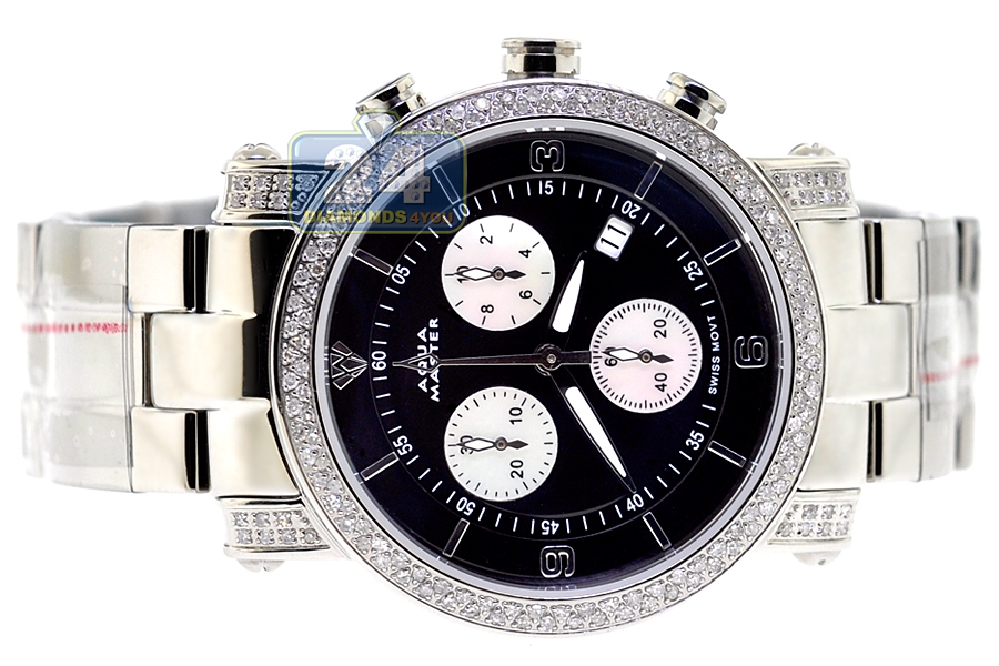 Womens Diamond Watch Aqua Master Round 1.75 ct Black Dial