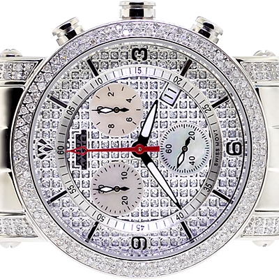 Make a fashionable statement wearing this stunning diamond watch for women designed by Aqua Master. It features stylish round-shaped case, durable wrist bracelet that are made of high-quality stainless steel. The timepiece has pave dial with three white sub-dials. For accurate timing, it comes with Swiss quartz movement that has chronograph and date functions. As official dealer of Aqua Master brand, 24diamonds.com offers original packaging, 1-year factory warranty and professional after-warranty service.