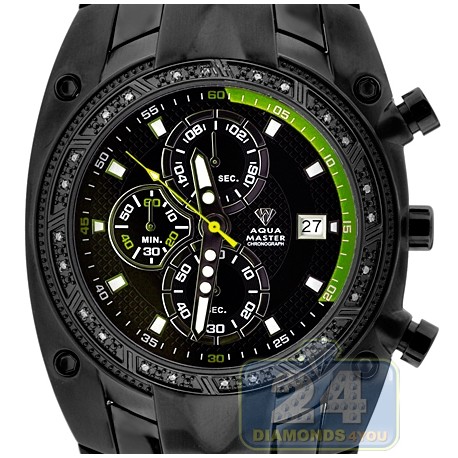 Aqua Master Chrono 0.24 ct Diamond Green Tone Mens Black PVD Watch