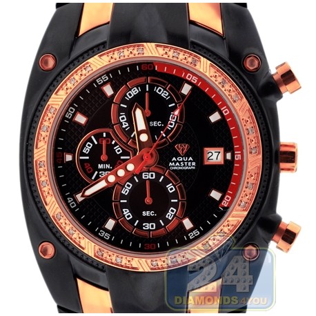 Aqua Master Chronograph 0.24 ct Diamond Mens Rose Gold Black PVD Watch