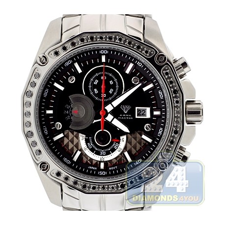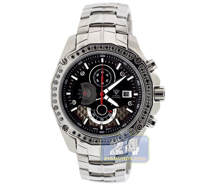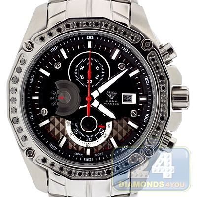 Aqua Master Chrono 1.50 ct Black Diamond Mens Steel Watch