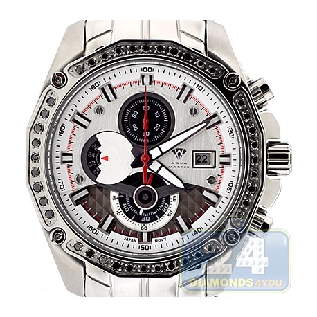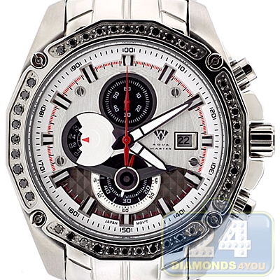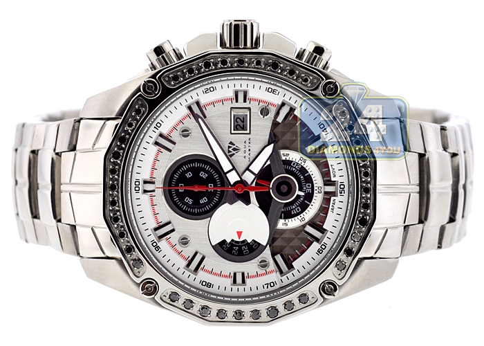 Aqua Master Chrono 1.50 ct Black Diamond Mens Silver Dial Watch