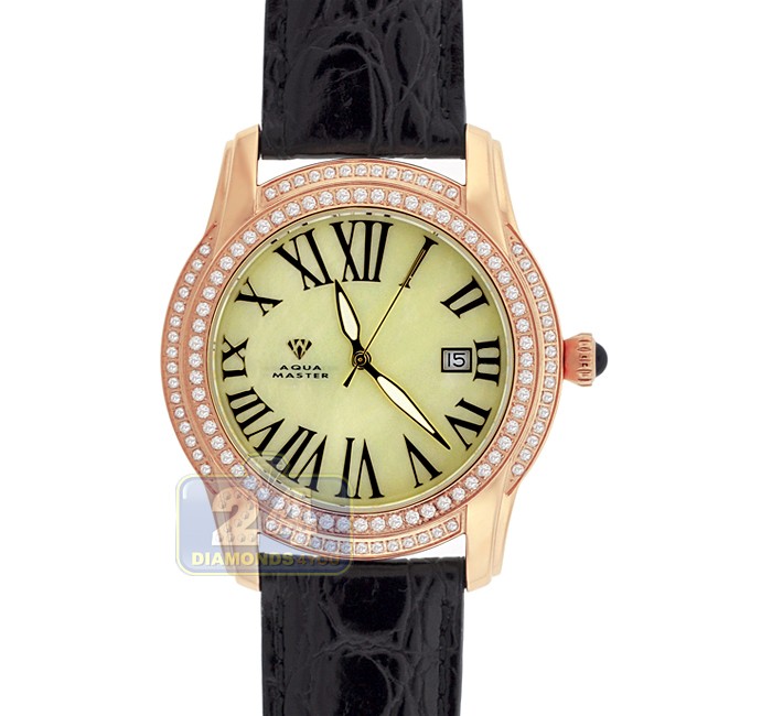 Aqua Master Slim 1.85 ct Diamond Mens Leather Watch