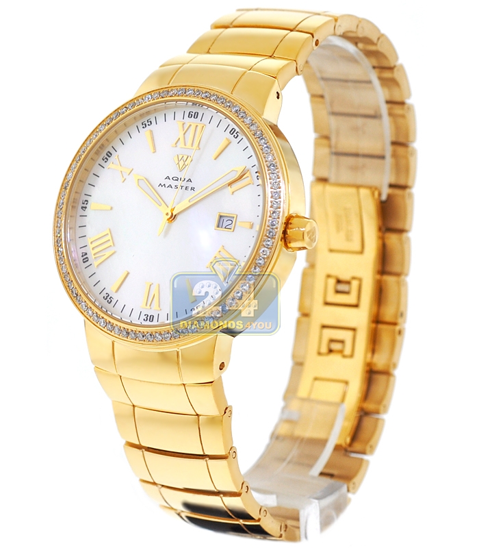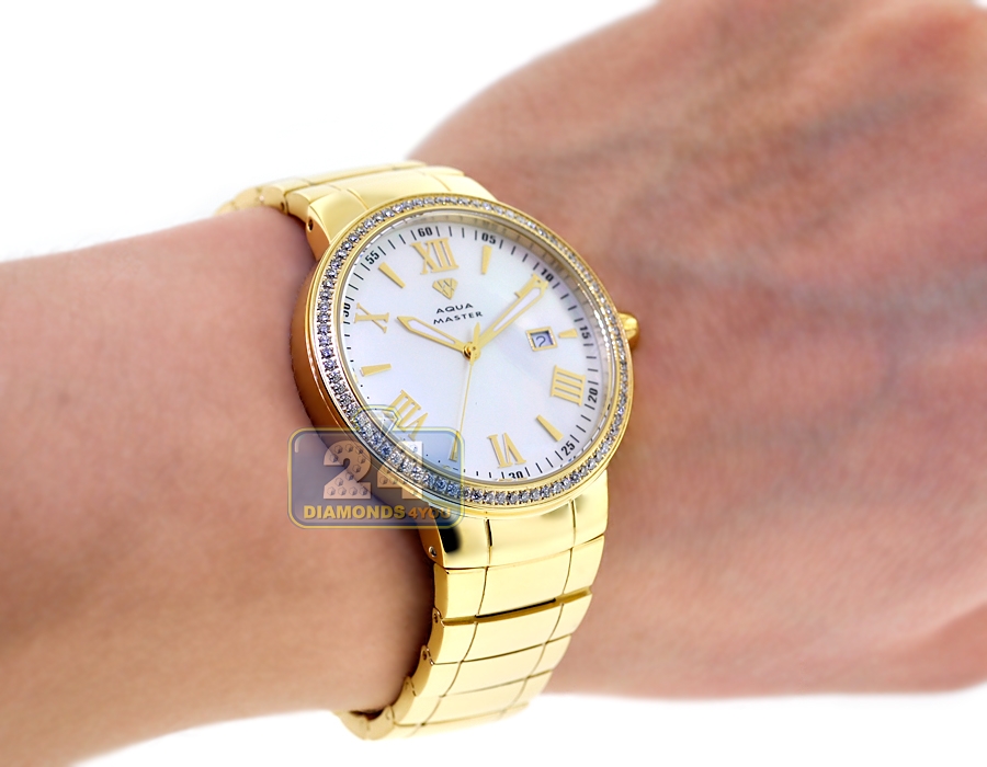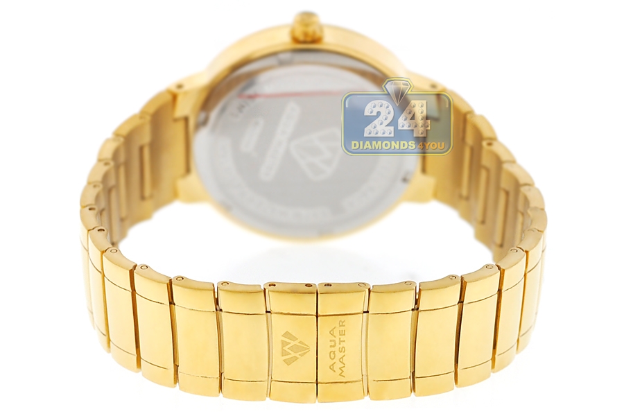 Aqua Master Round 1.30 ct Diamond Mens Yellow Gold Watch