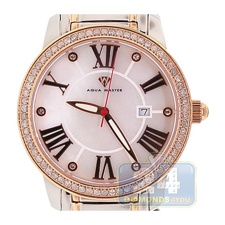 Aqua Master Classic Round 1.75 ct Diamond Mens Rose Gold Tone Watch 45 mm