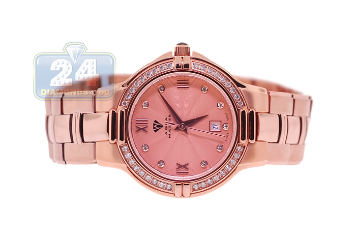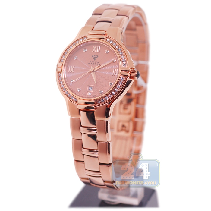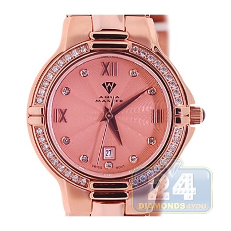 Aqua Master Classics Round 0.60 ct Diamond Womens Rose Dial Bracelet Watch