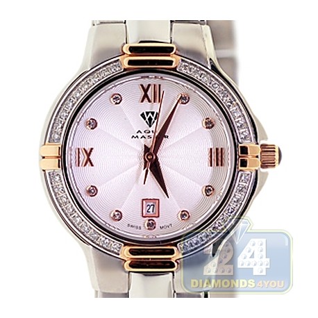Aqua Master Classics Round 0.60ct Diamond Womens Gold Steel Watch