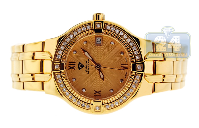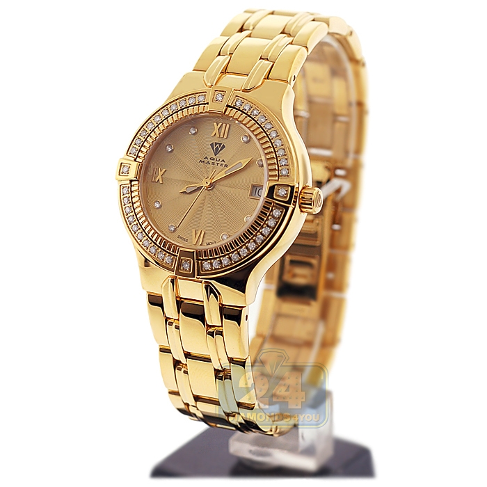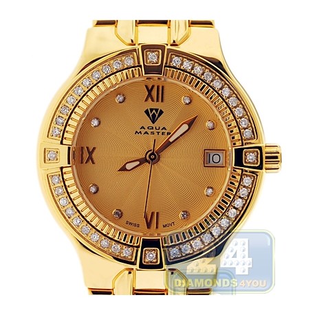 Aqua Master Classics Round 0.60 ct Diamond Womens Gold Watch 36 mm