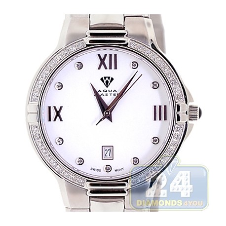 Aqua Master Round 1.00 ct Diamond Mens Steel Bracelet Silver Dial Watch