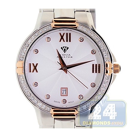 Aqua Master Classics Round 1.00 ct Diamond Mens 2 Tone Gold Steel Watch
