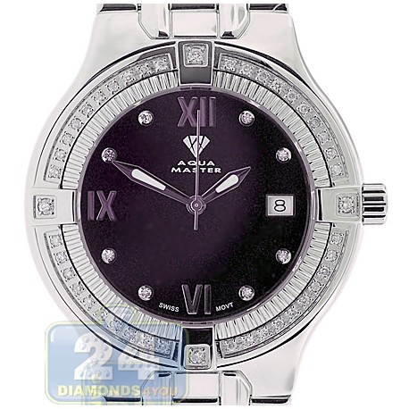 Aqua Master Classics Round 1.00 ct Diamond Mens Black Dial Steel Watch