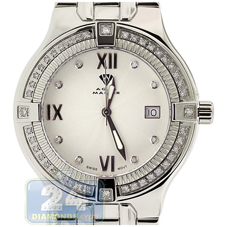 Aqua Master Classics Round 1.00 ct Diamond Mens Steel Bracelet Watch