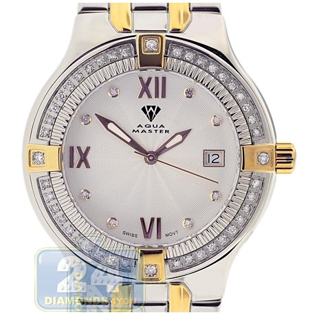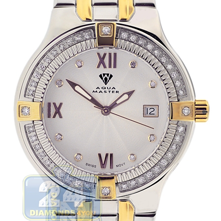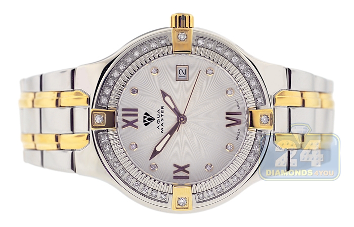 Aqua Master Classics Round 1.00 ct Diamond Mens Gold Tone Steel Watch