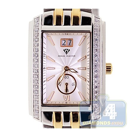 Aqua Master Square 1.50 ct Diamond Mens Gold Tone Steel Bracelet Watch