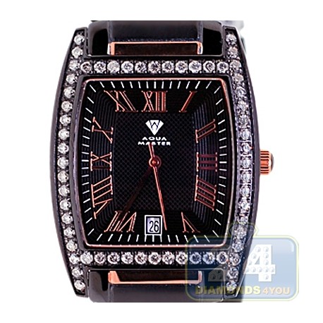 Aqua Master Tonneau 2.10 ct Diamond Mens Rose Black PVD Bracelet Watch