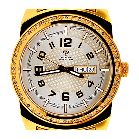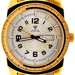 Aqua Master Day Date 0.12 ct Diamond Mens Yellow Watch