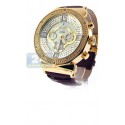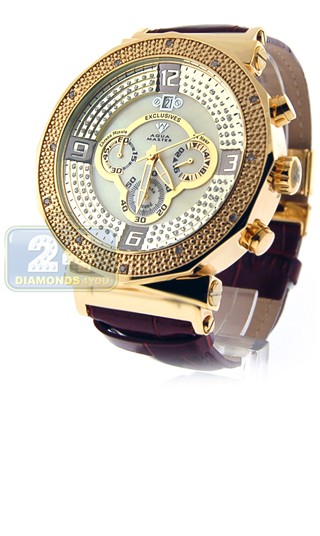Aqua Master Exclusives Gold Steel Diamond Mens Watch on Leather Band