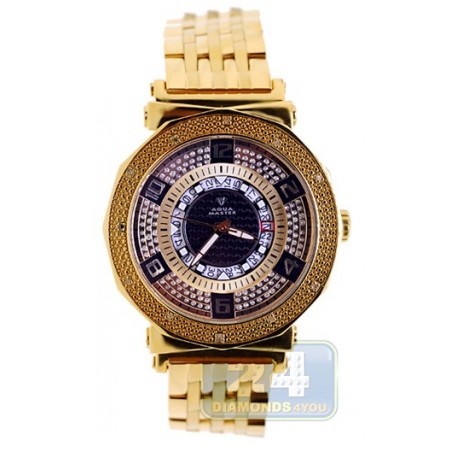 Aqua Master Yellow Steel Diamond Mens Bracelet Carbon Dial Watch
