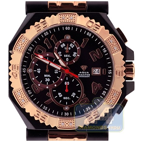 Aqua Master Octagon 0.12 ct Diamond Rose Tone Mens Black Watch