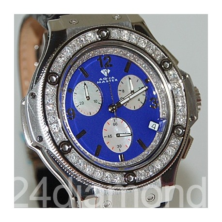 Aqua Master Oval 4.00 ct Diamond Mens Blue Dial Watch