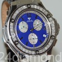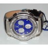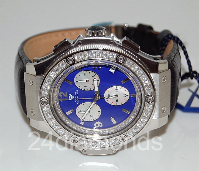 - Blue Ceramic Dial with Silver Accents and 3 Chrono Dials, Pave Diamonds on the Top