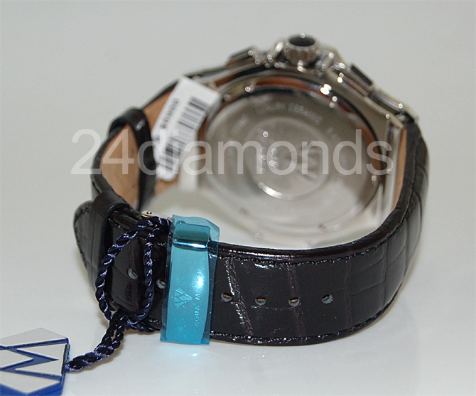 - Solid Stainless Case with Black Ceramic Accents on Genuine Leather Band (26mm width)