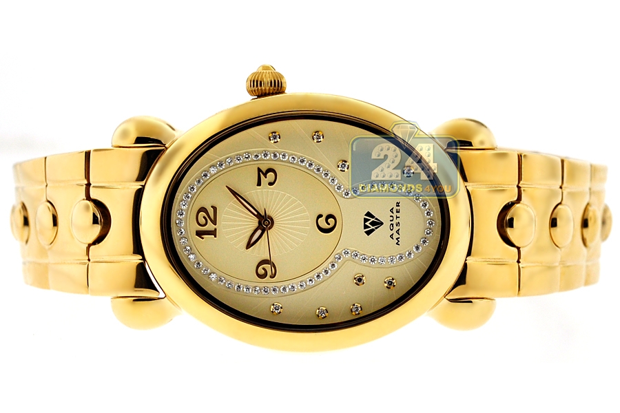 Aqua Master Oval Swiss Quartz Womens Yellow Watch
